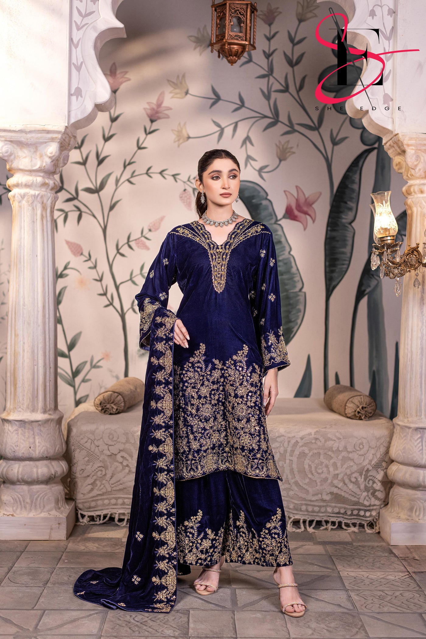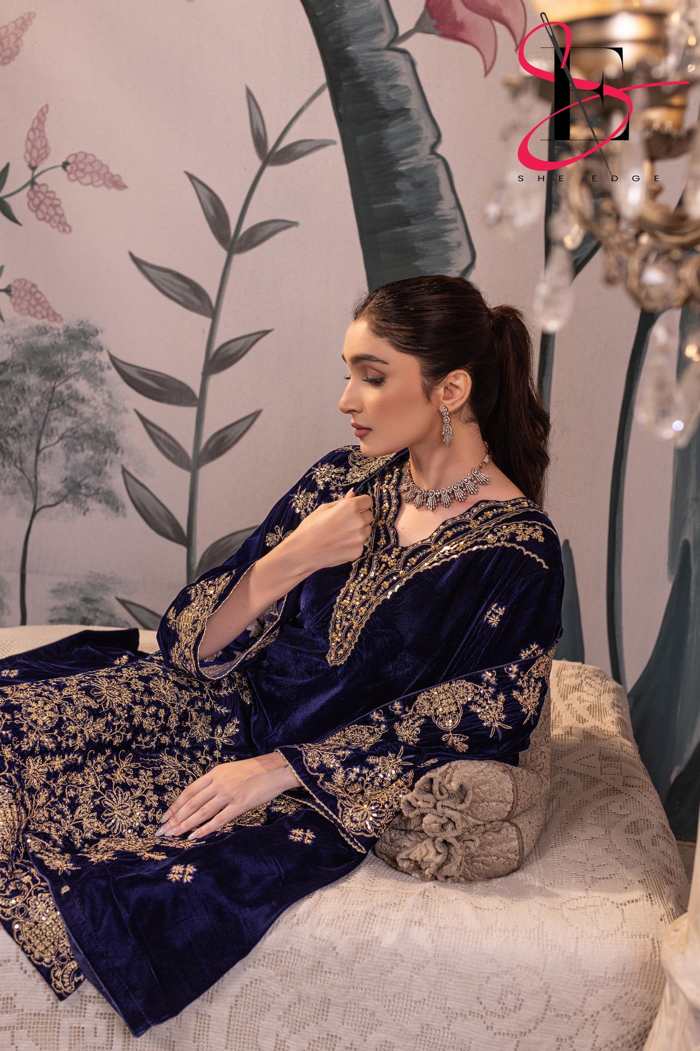 Embroidered Velvet Shawl Dupatta: Luxuriously soft and flowing, delicately embellished with embroidery to complete your graceful look.