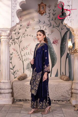 Embroidered Velvet Shirt (BLUE): Elegantly crafted with intricate embroidery, blending timeless sophistication with a modern silhouette.