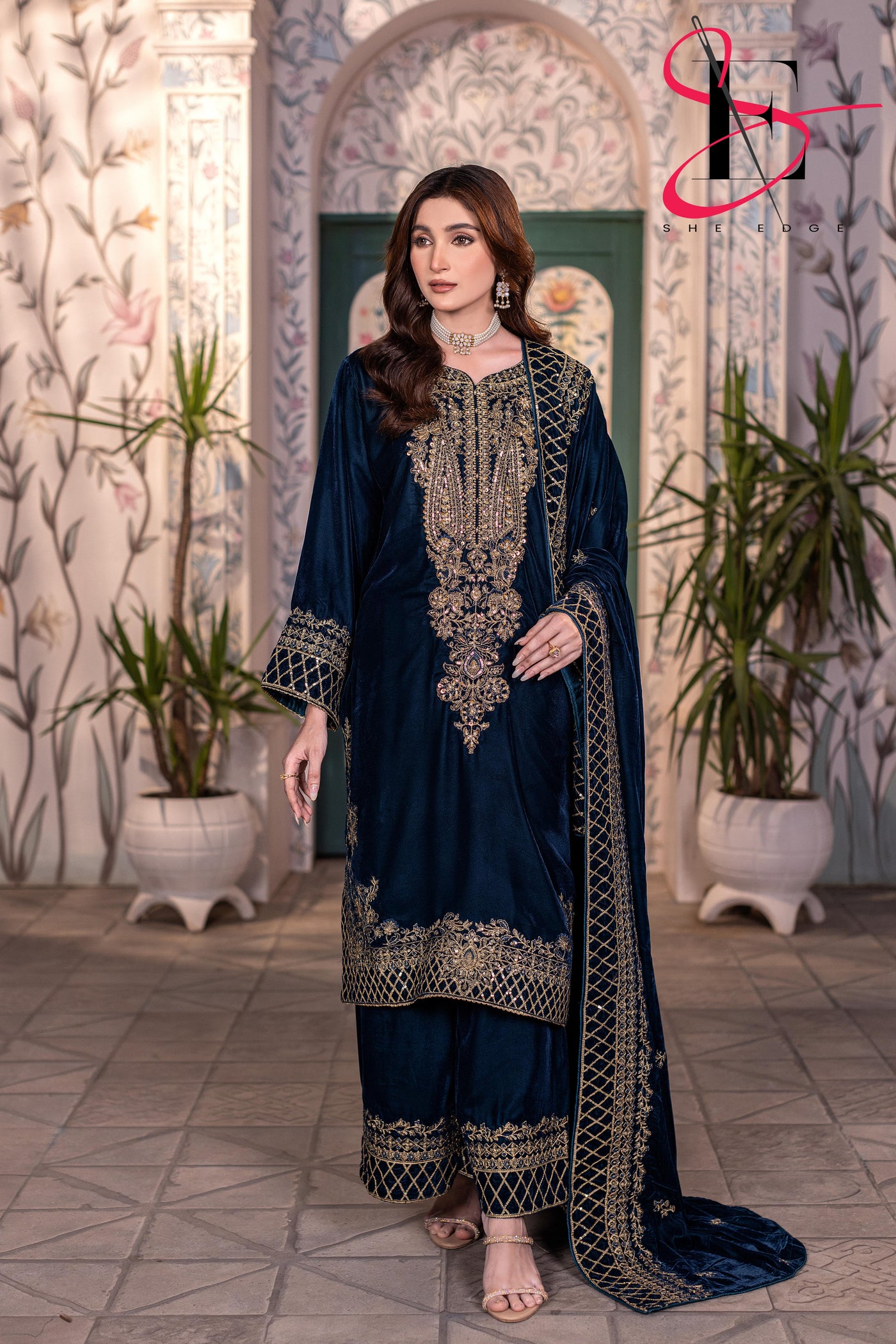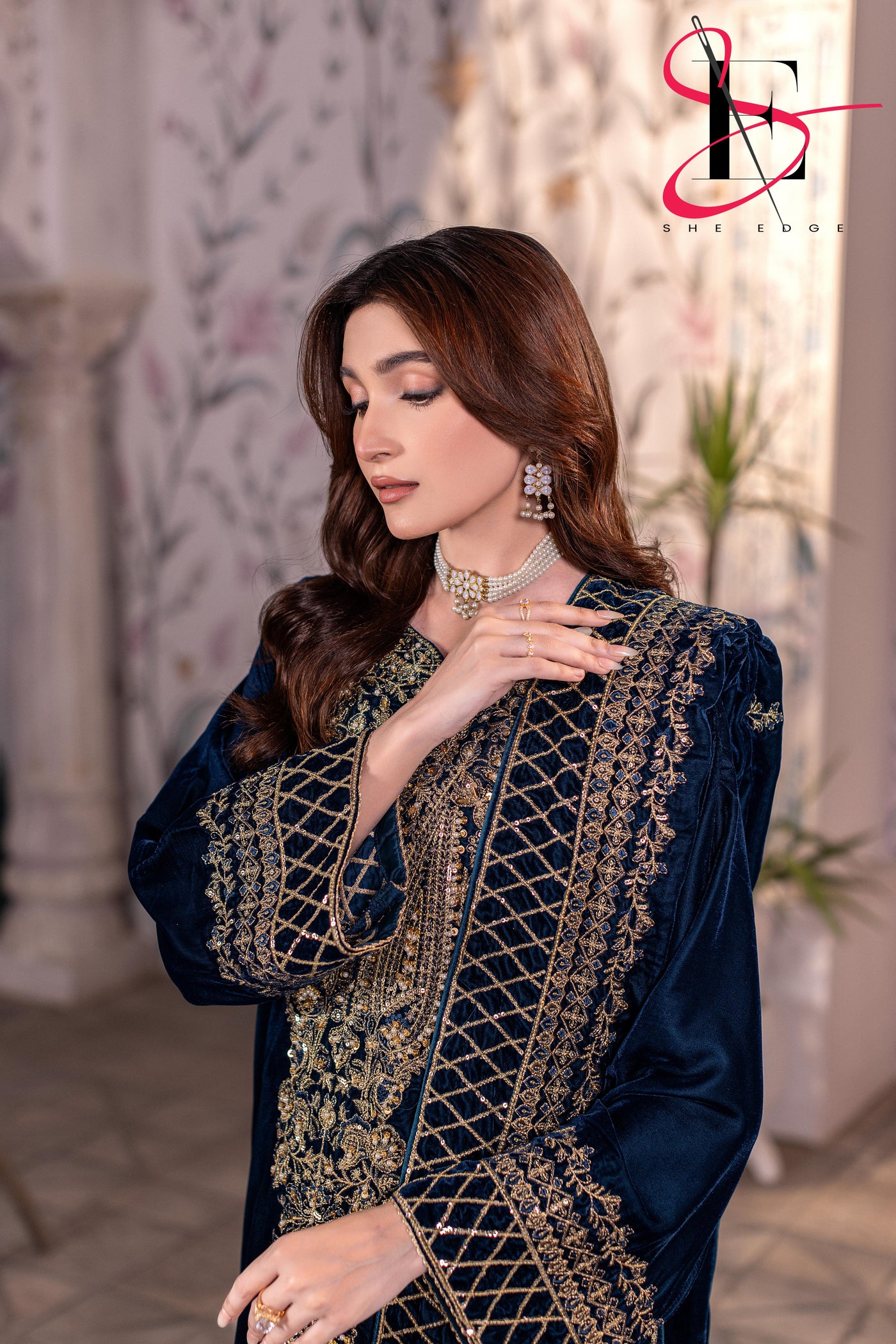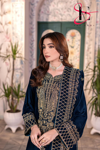 Embroidered Velvet Shawl Dupatta: Luxuriously soft and flowing, delicately embellished with embroidery to complete your graceful look.