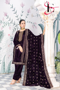 3PC Festive Micro Velvet Dress Embroidered - Winters 2025