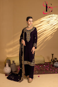 3PC Festive Micro Velvet Dress Embroidered - Winters 2025