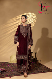 3PC Festive Micro Velvet Dress Embroidered - Winters 2025