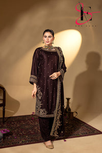3PC Festive Micro Velvet Dress Embroidered - Winters 2025