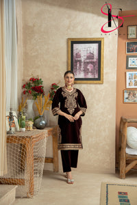 Unleash your winter wardrobe's potential with our Two Piece Stitched Velvet Suit, perfect for enhancing elegance and warmth during your holiday events. This luxurious ensemble features: