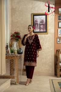 Maximize your winter wardrobe with our Two Piece Stitched Velvet Suit - perfect for adding sophistication and coziness to all your holiday occasions. This opulent set includes: