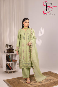 Bring elegance to your winter wardrobe with this three-piece stitched embroidered suit in a rich green shade. Designed with beautiful embroidery and refined detailing, this outfit blends style, comfort, and cultural grace—perfect for both everyday wear and special gatherings.
