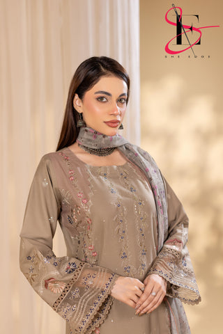 Three Piece Stitched Embroidered Suit - Winters 2025 Sale