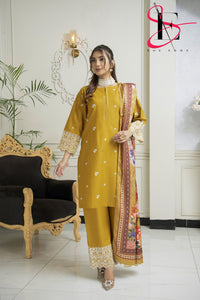 This exquisite Three Piece Stitched Embroidered Suit - Winters 2024 is the ultimate fashion upgrade. Made with superior materials, it offers a combination of sophistication and comfort. The precise stitching guarantees the perfect fit for any event, all while maintaining unparalleled coziness. A must-have for those who appreciate superior quality and style.