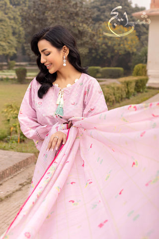 The look is completed with a digitally printed floral dupatta, adding a fresh pop of color and a soft, trendy vibe—ideal for warm days, casual outings, and everyday wear that still looks put-together. A simple outfit, styled in a fashioned cutline feel, made to stay trendy without trying too hard.
