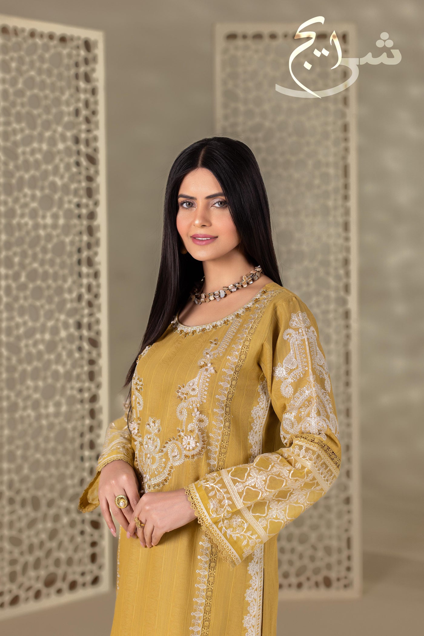 Bring a bold festive glow to your summer wardrobe with this standout 3-piece ethnic embroidered suit in a yellow—crafted to feel light, graceful, and celebration-ready. The embroidered shirt features refined detailing that instantly elevates the look, paired with a perfectly coordinated embroidered trouser for a polished, premium finish from top to bottom.