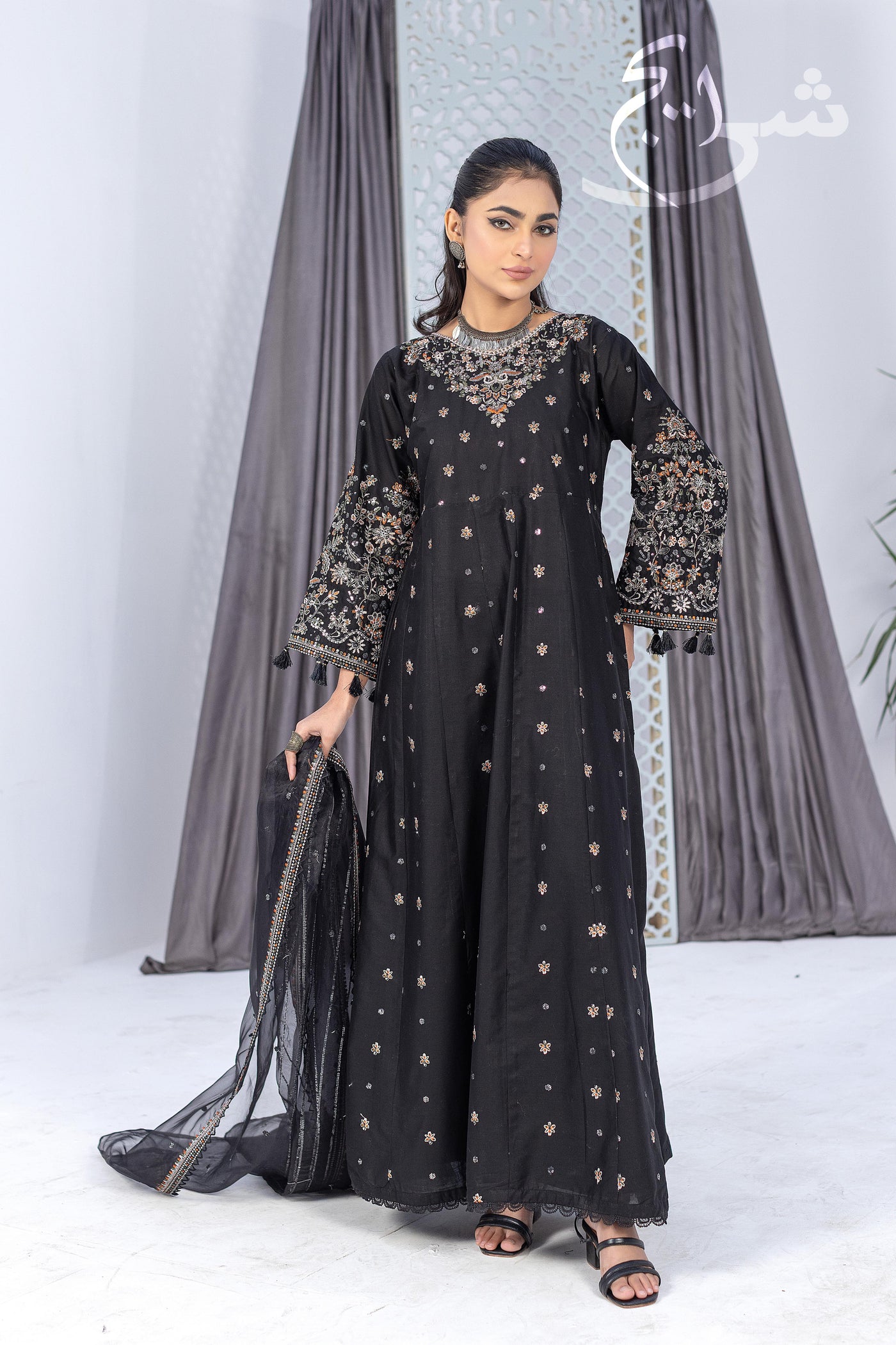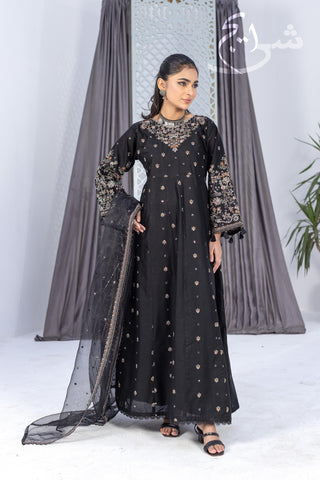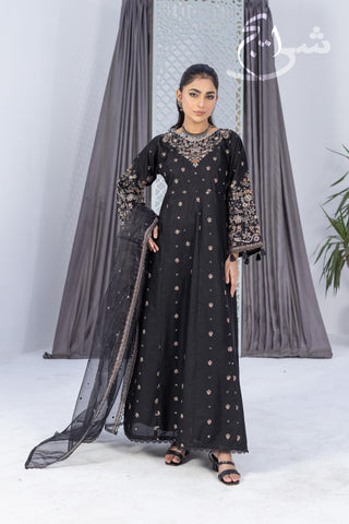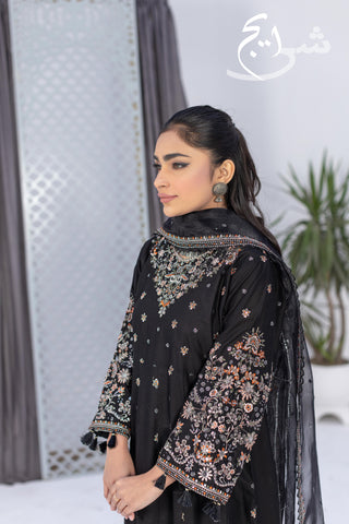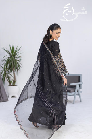 Bring a bold festive glow to your summer wardrobe with this standout 3-piece ethnic embroidered suit in a rich black tone—crafted to feel light, graceful, and celebration-ready. The embroidered shirt features refined detailing that instantly elevates the look, paired with a perfectly coordinated embroidered trouser for a polished, premium finish from top to bottom.