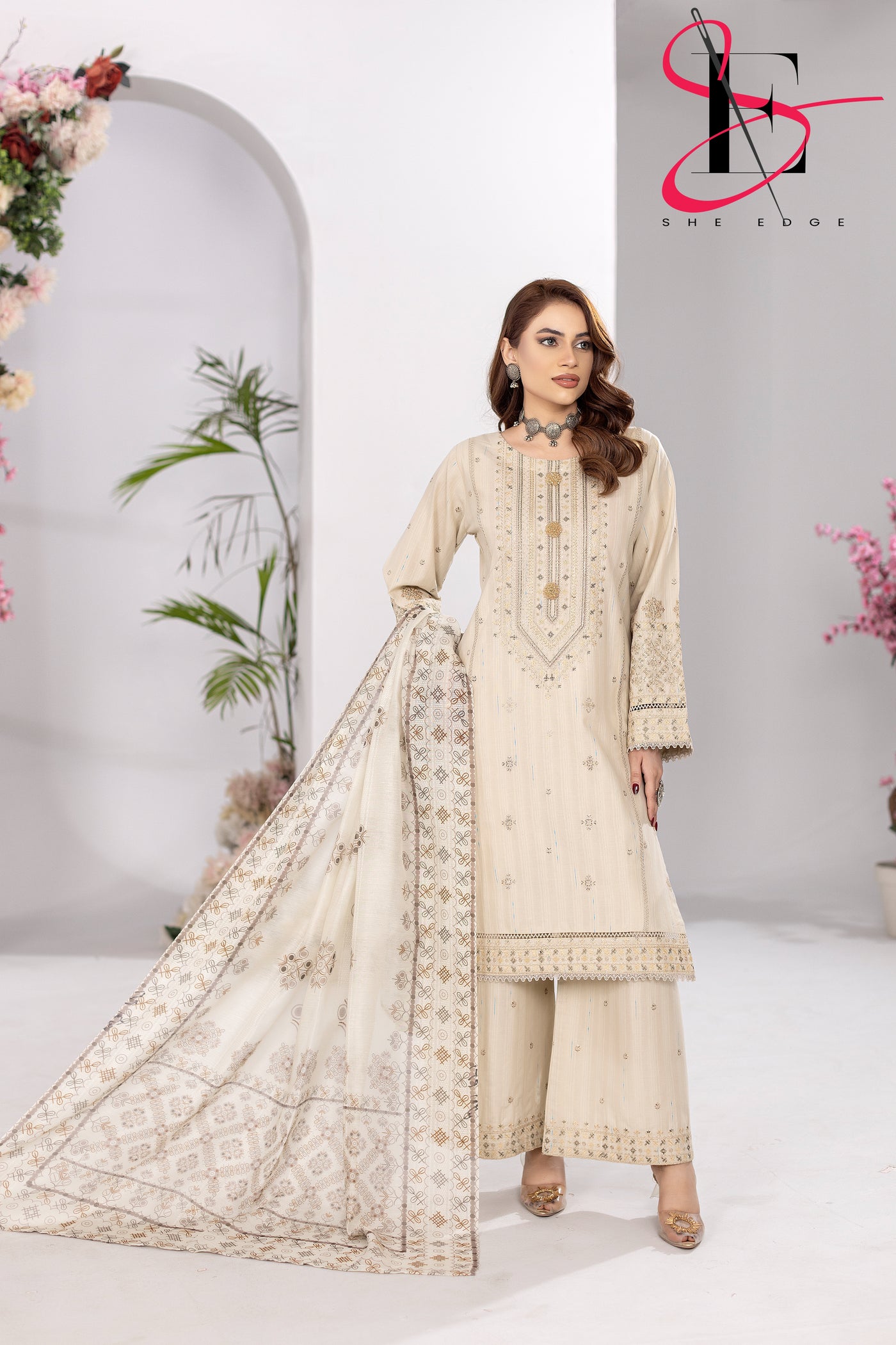 Discover timeless refinement with the Three Piece Stitched Embroidered Suit - Summers 2025. This collection seamlessly blends modern design and classic charm, featuring intricate patterns, bold colors, and high-quality materials. Perfect for formal occasions, this suit is a must-have for making a lasting impression.