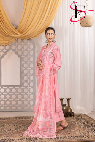 Elevate your attire with the Three Piece Stitched Embroidered Suit - Summers 2025. This suit boasts vibrant hues and intricate embroidery, making it perfect for formal events. It skillfully blends timeless craftsmanship with contemporary style, creating a refined and lasting piece for your wardrobe.