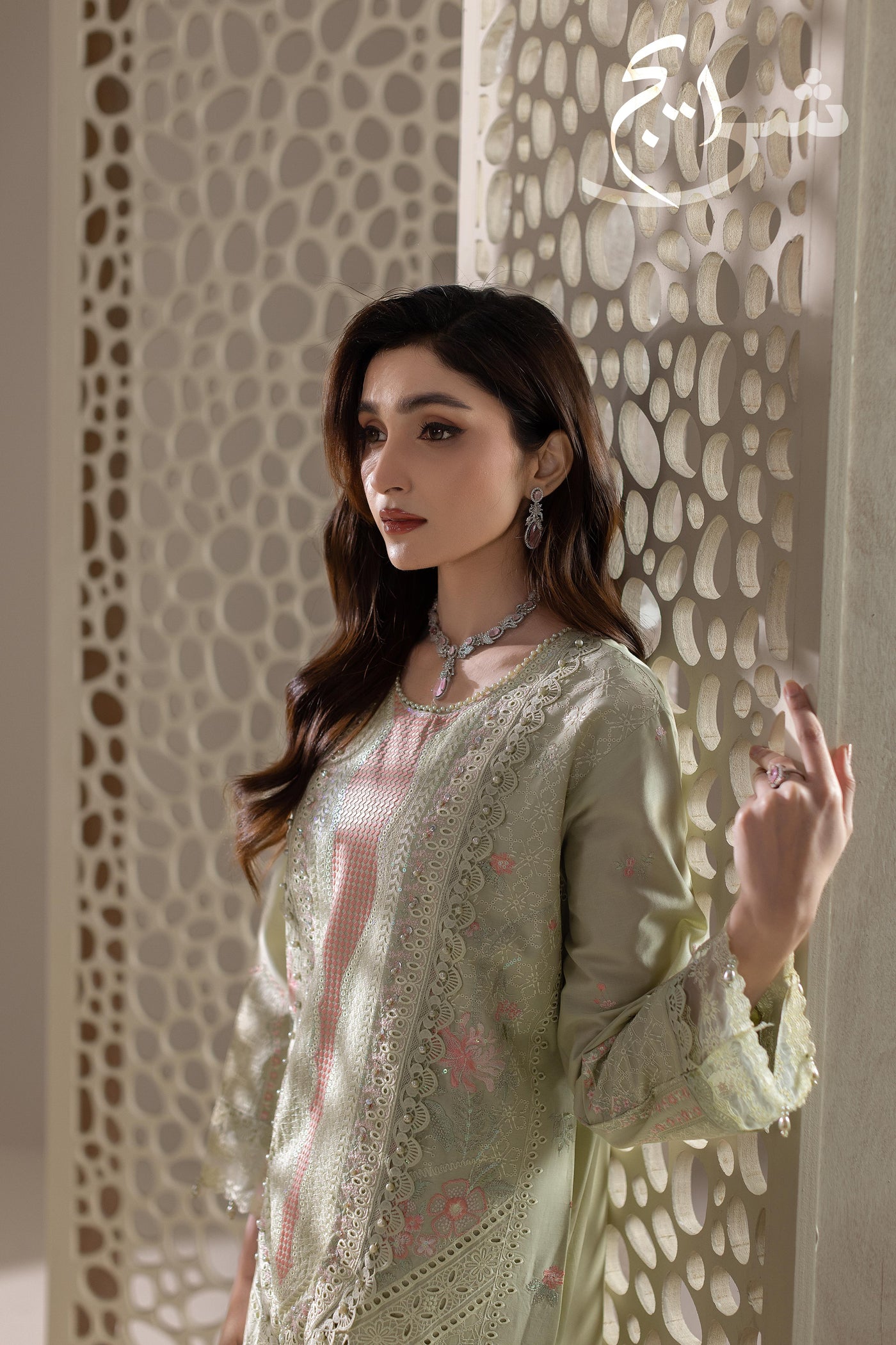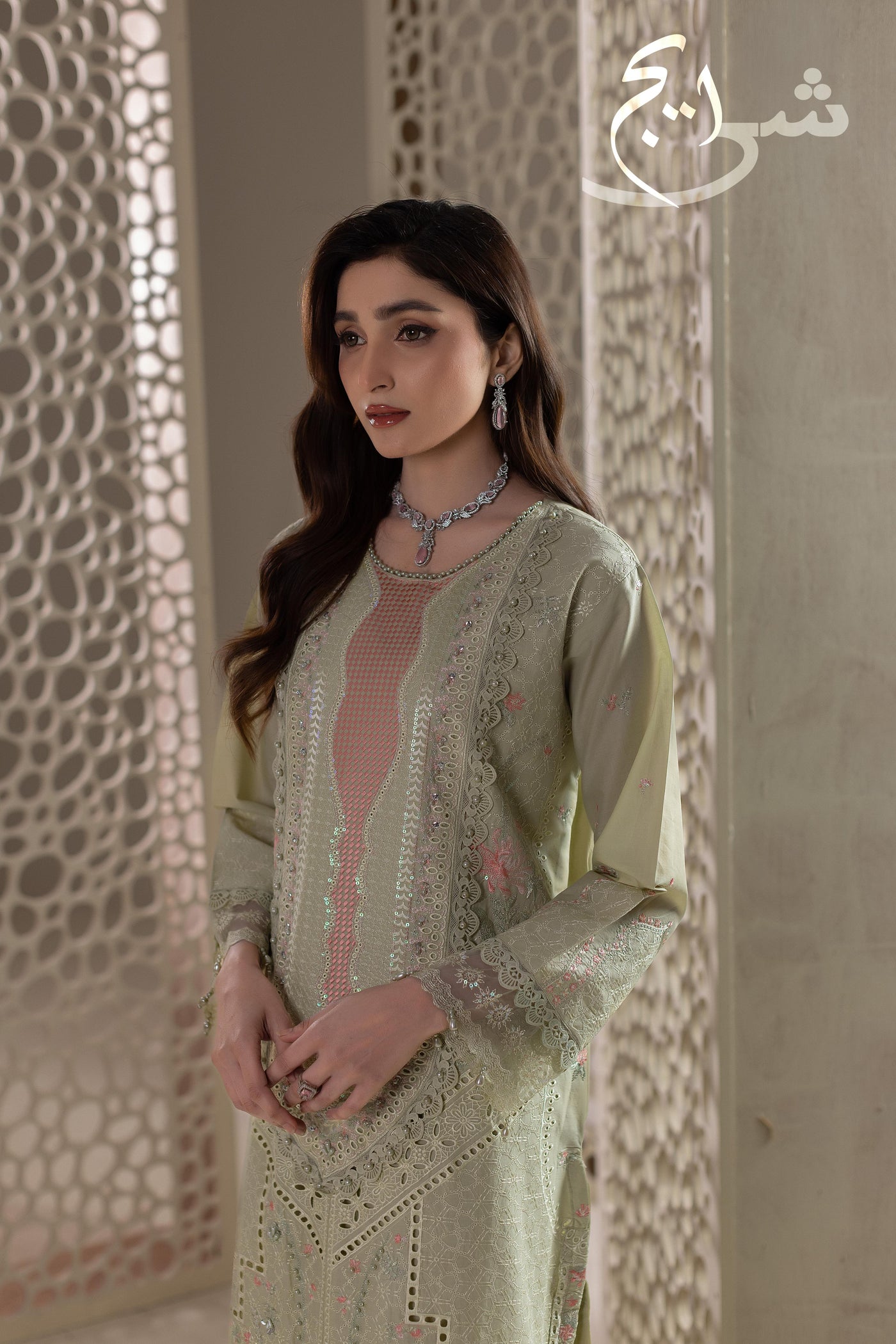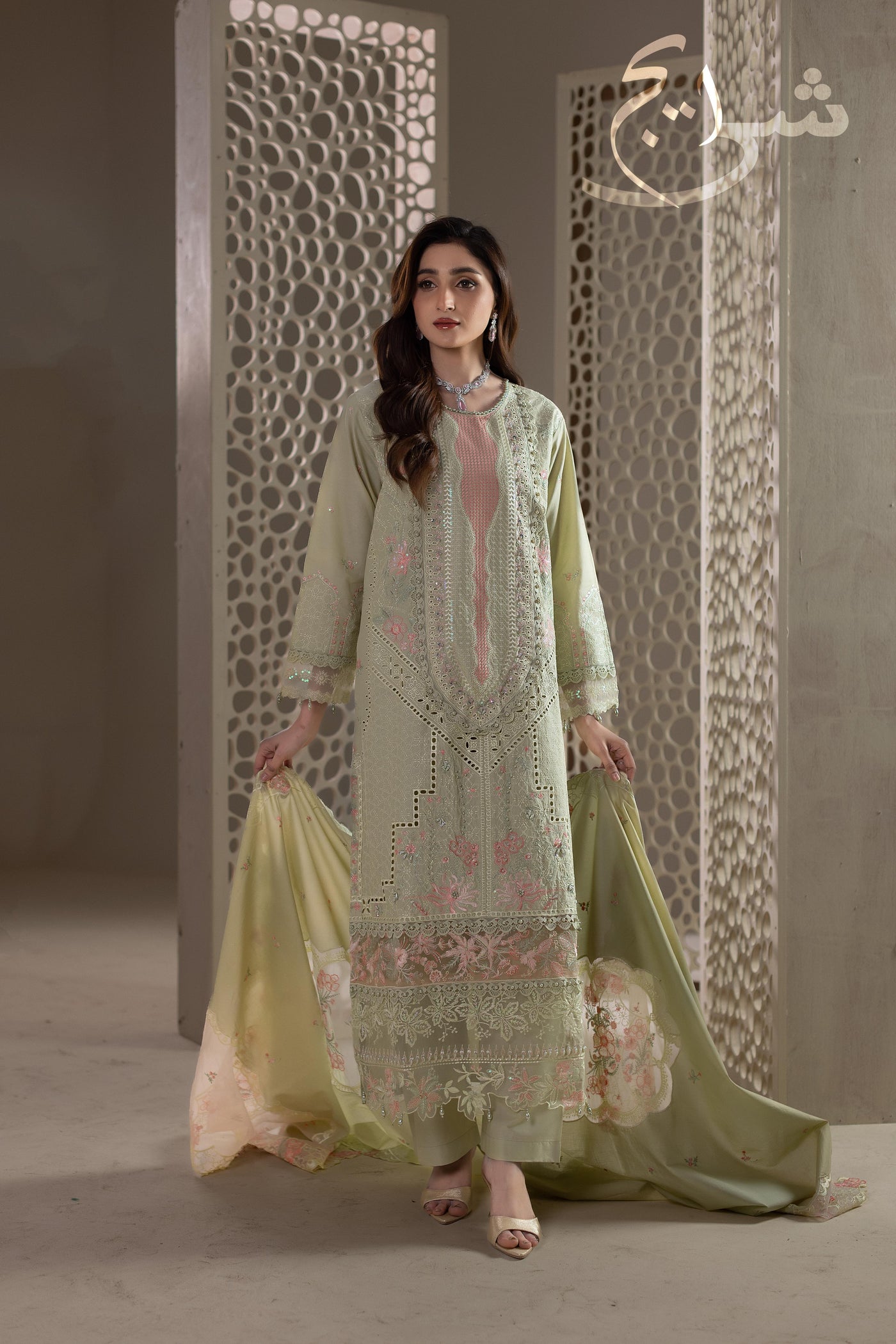 Perfect for Eid days, festive brunches, summer dawats, and semi-formal wear, this outfit blends graceful color, detailed workmanship, and top-of-the-line stitching for a truly premium finish.