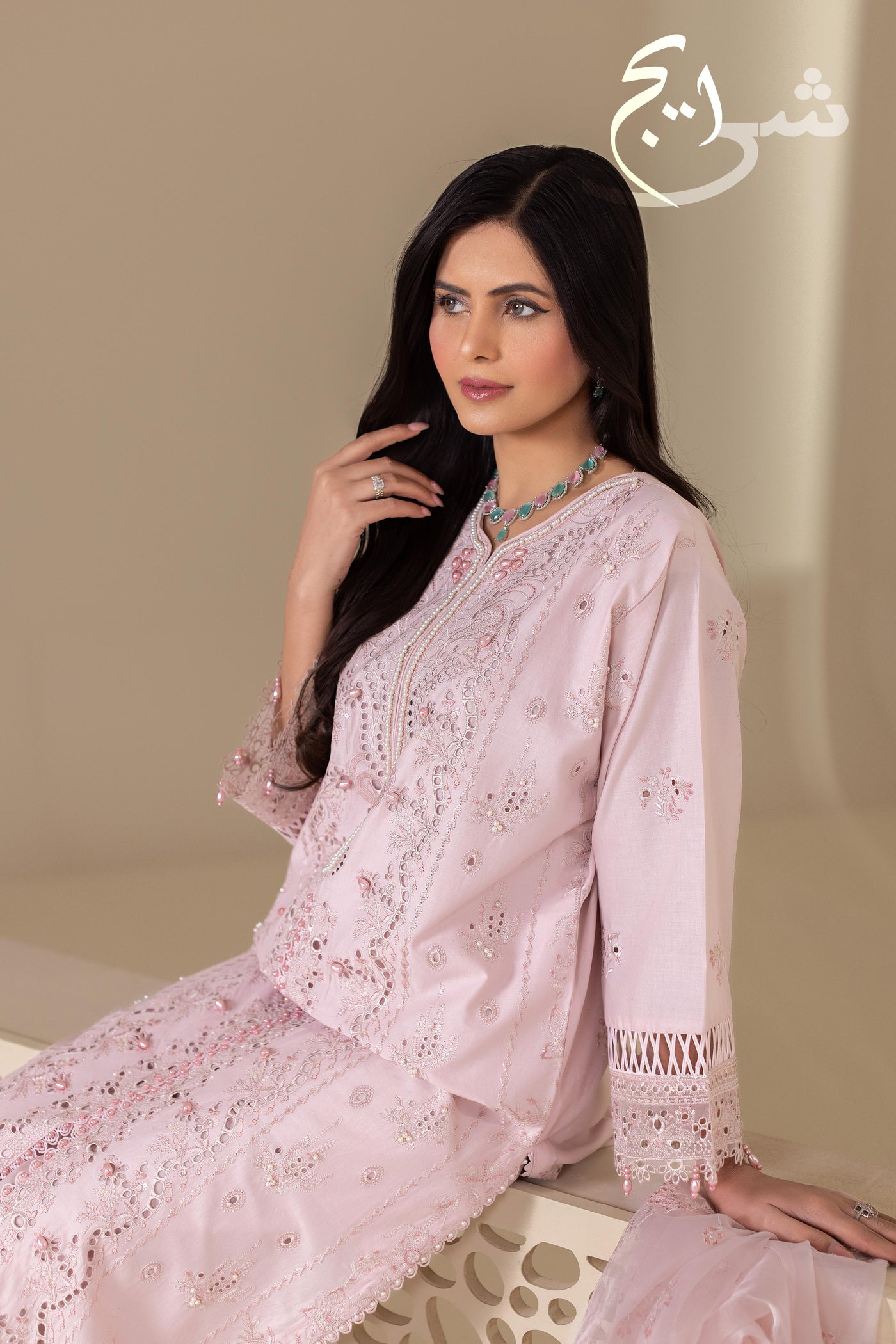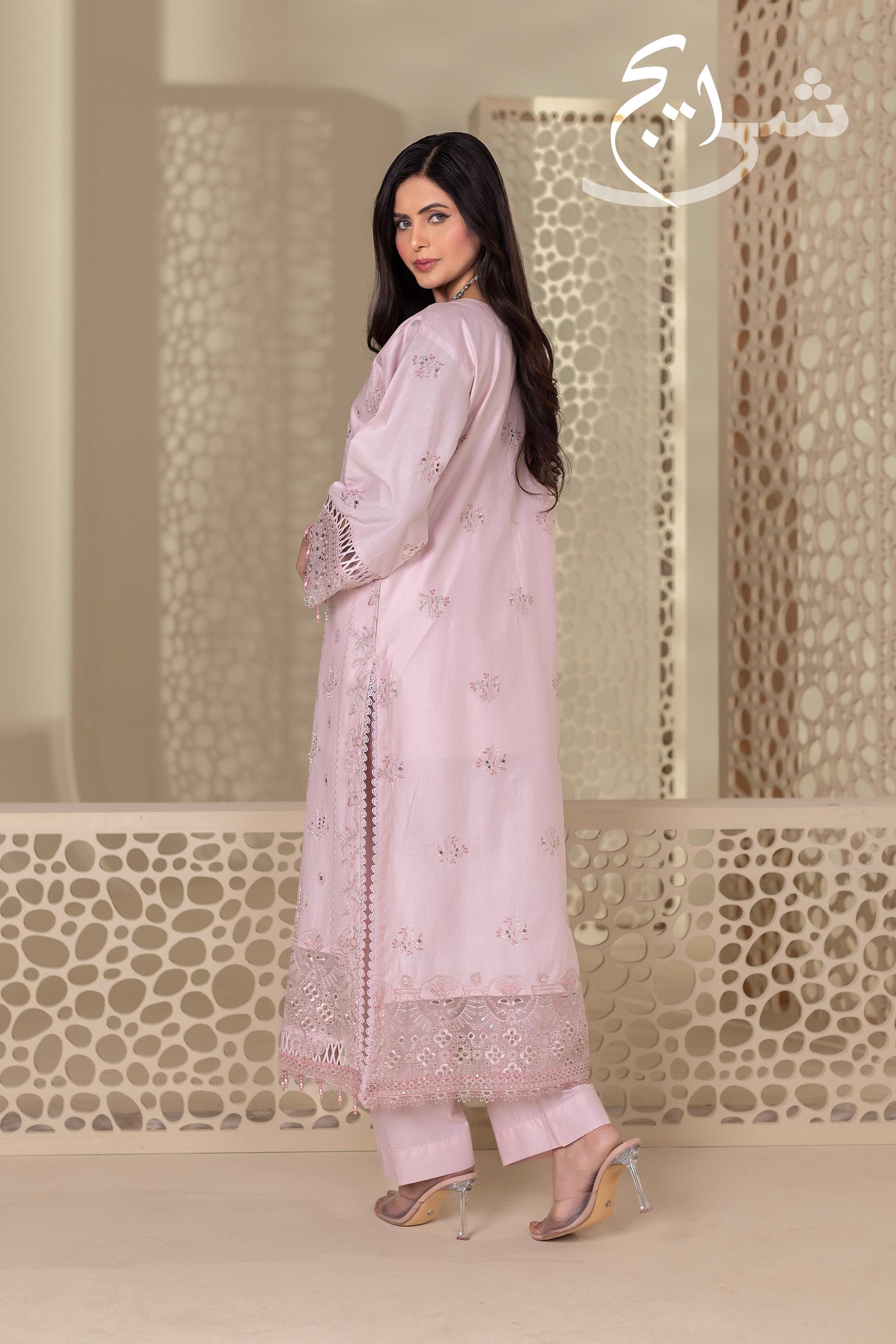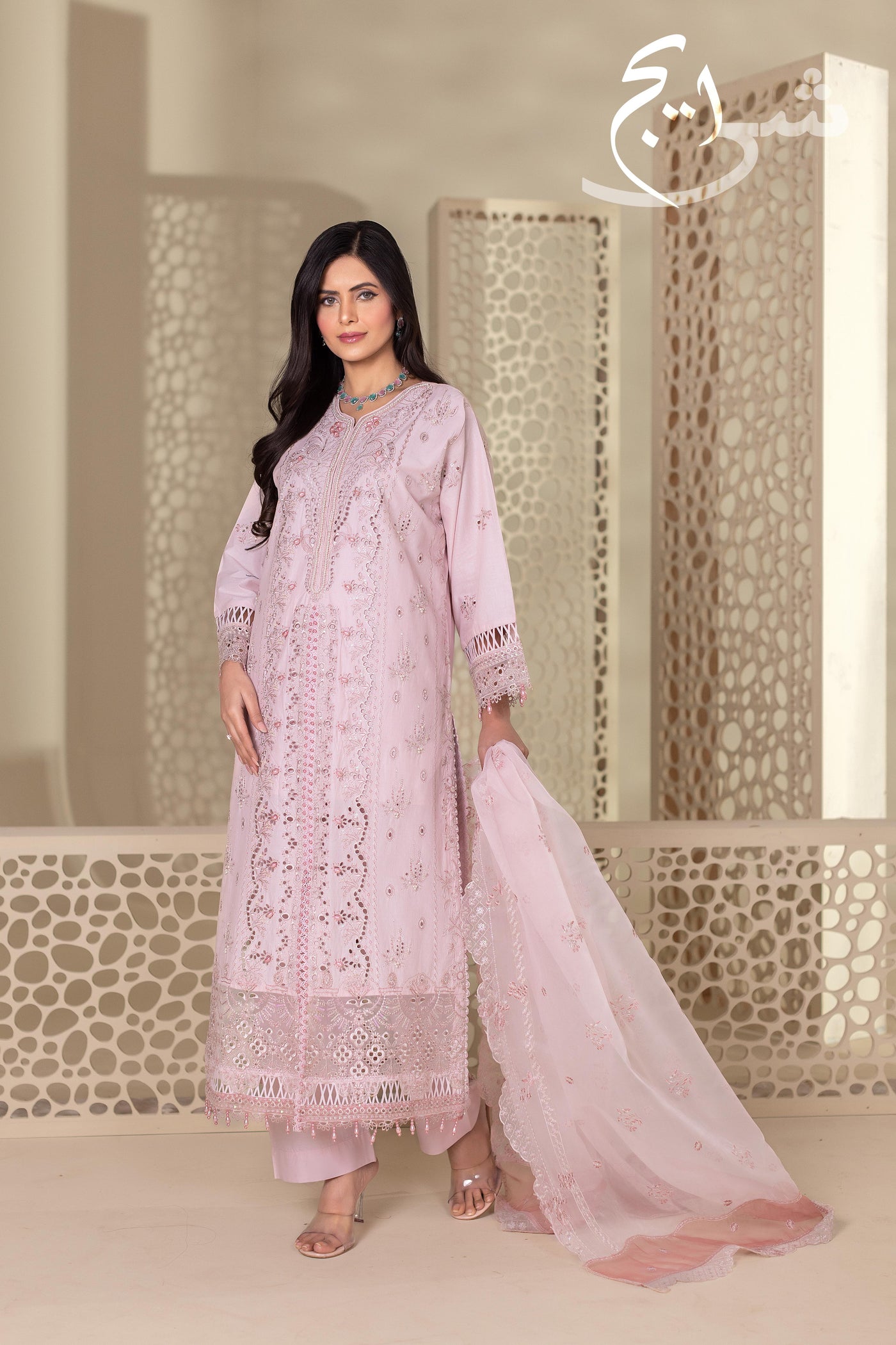Perfect for Eid days, festive brunches, summer dawats, and semi-formal wear, this outfit blends graceful color, detailed workmanship, and top-of-the-line stitching for a truly premium finish.