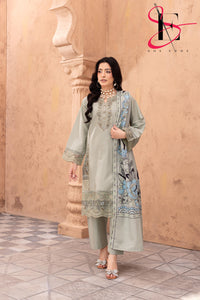 Elevate your winter style with SHE EDGE’s embroidered two-piece suit in a peace pista color shade. Crafted from cozy winter fabric, its intricate detailing and gracefully designed dupatta make it a timeless choice for both everyday elegance and special occasions.”